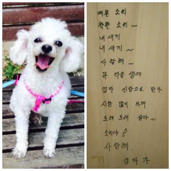 늘 생각하고 있으니까~~ 엄마 걱정말고 소리도 하늘에서 건강하기