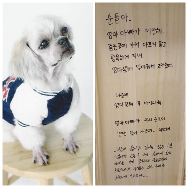 순돌엄마 작성일순돌아~~엄마가 마니 보고싶다...집에 우리순돌이가 없다는게 아직 실감이 안나..우리 순돌이 이불..옷...수건..유모차..그자리에 다 있는데 우리순돌이만 없어....엄마가 미안해..거기선 친구들이랑 마니 놀구..맛있는것도 마니먹고 아프지 마..정말정말 마니 보고싶다...사랑해..미안해...